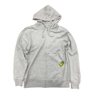 パーカーのポケット部分を雪山の斜面に見立て、アルクマがスノーボードで元気に滑る姿がワンポイントでプリントされています。