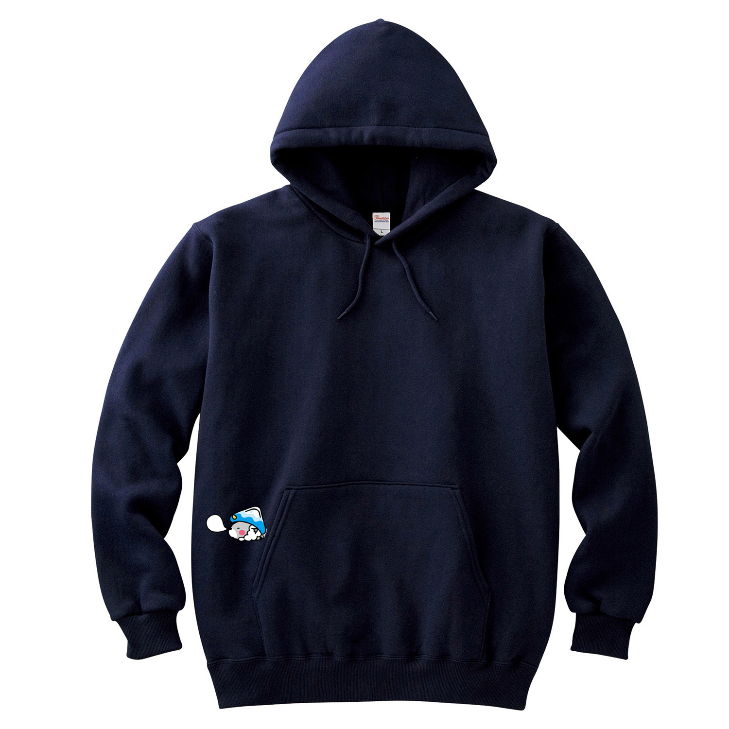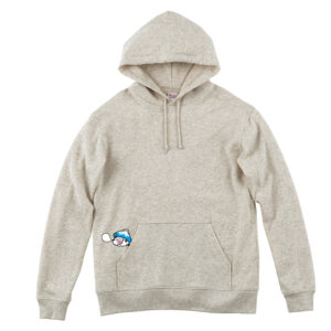 パーカーのポケットからそっと顔を出し、気持ちよさそうに眠っている姿をワンポイントであしらいました。